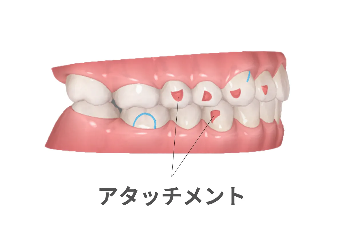 マウスピース矯正では、狙った位置へ正確に歯を動かしていくために「アタッチメント」と呼ばれる小さな突起を使用します。
